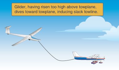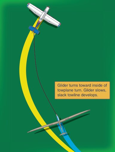 Also be careful to keep the glider pointed to the outside wing of the tow plane during turns to avoid developing slack in the tow rope.