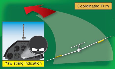 Making turns in a glider can be a bit of a challenge. It is important to use both the ailerons and rudder in a fashion that results in a coordinated turn, one in which the yaw string is straight up and down in your windshield.