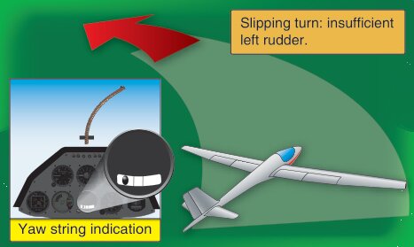 Of course, you can also use too much rudder, resulting in a skidding turn as shown here.